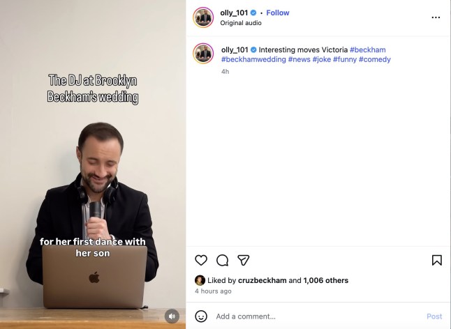 Captioning the video with “POV: Victoria Beckham during Brooklyn’s first dance,” Fat Tony added, “Actual video footage it’s true I was there!” This witty post not only confirmed Brooklyn’s claims but also added a light-hearted twist that delighted fans.