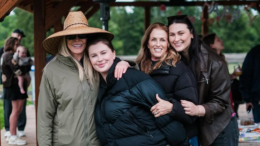 Ireland, known for her towering height of 6 feet 2 inches and striking presence as a Guess model, looked effortlessly stylish. She wore a gray New York sweatshirt paired with peach shorts that revealed a leg tattoo, complemented by white sneakers and a crossbody purse. Her brunette hair was tied up in a neat top knot. Kim Basinger, the legendary Bond girl, appeared relaxed and happy to be spending time with her daughter and granddaughter.